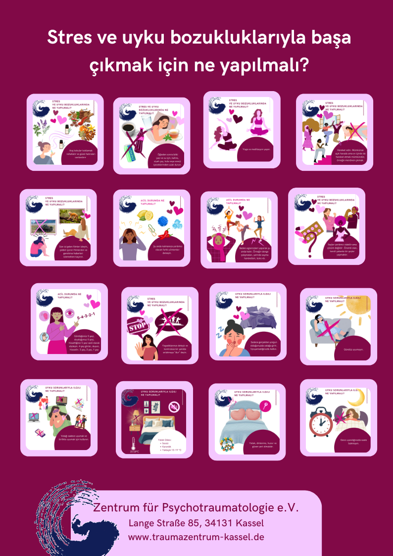 Poster und Karten zum Ausschneiden mit den Selbsthilfetipps für Trauma, Stress, Schlaf